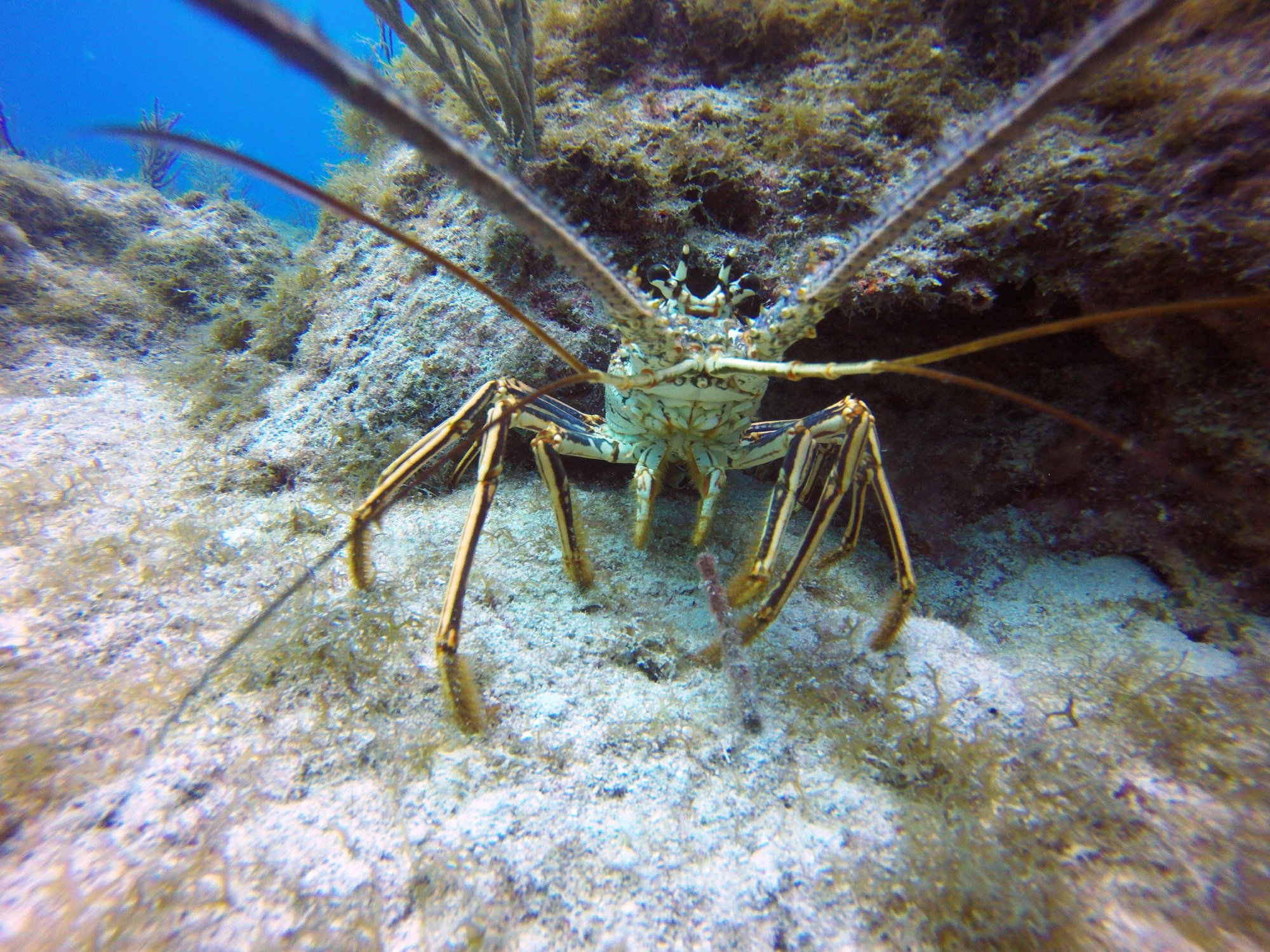 Spiny lobsters, or “bugs” as the locals call them, are nocturnal and only roam around at night, which is probably the least likely time you would be out there on the hunt. During the day, they like to hide away in holes and underneath ledges, and they are not so easy to spot most of the time. To find their hidey-hole, you may want to look for their rather long antennas sticking out from underneath a rock or other solid formation.